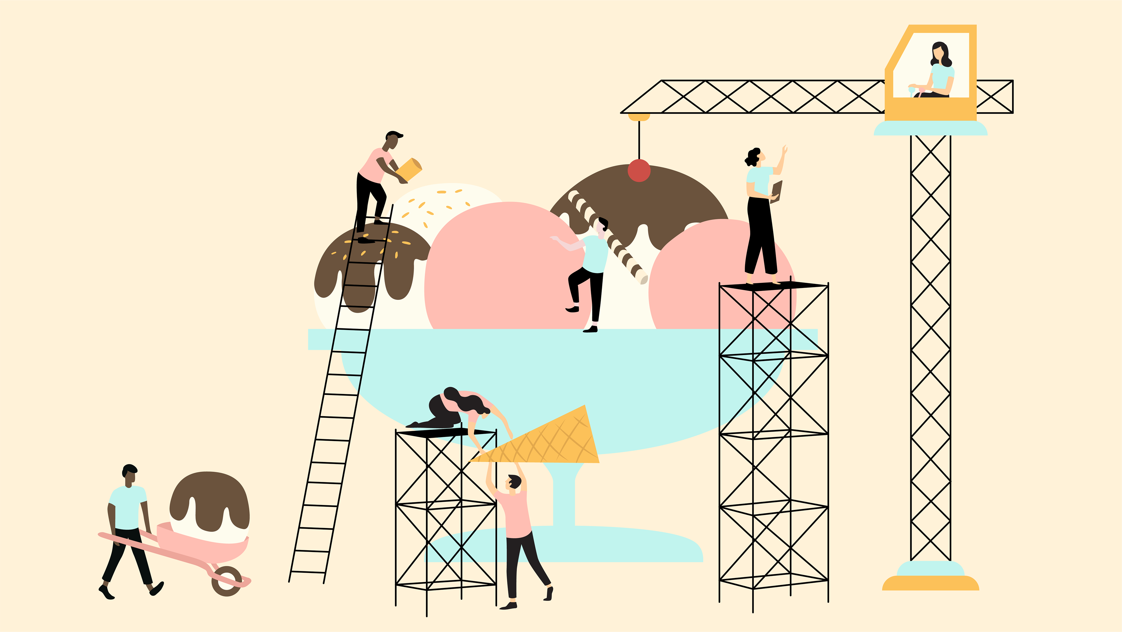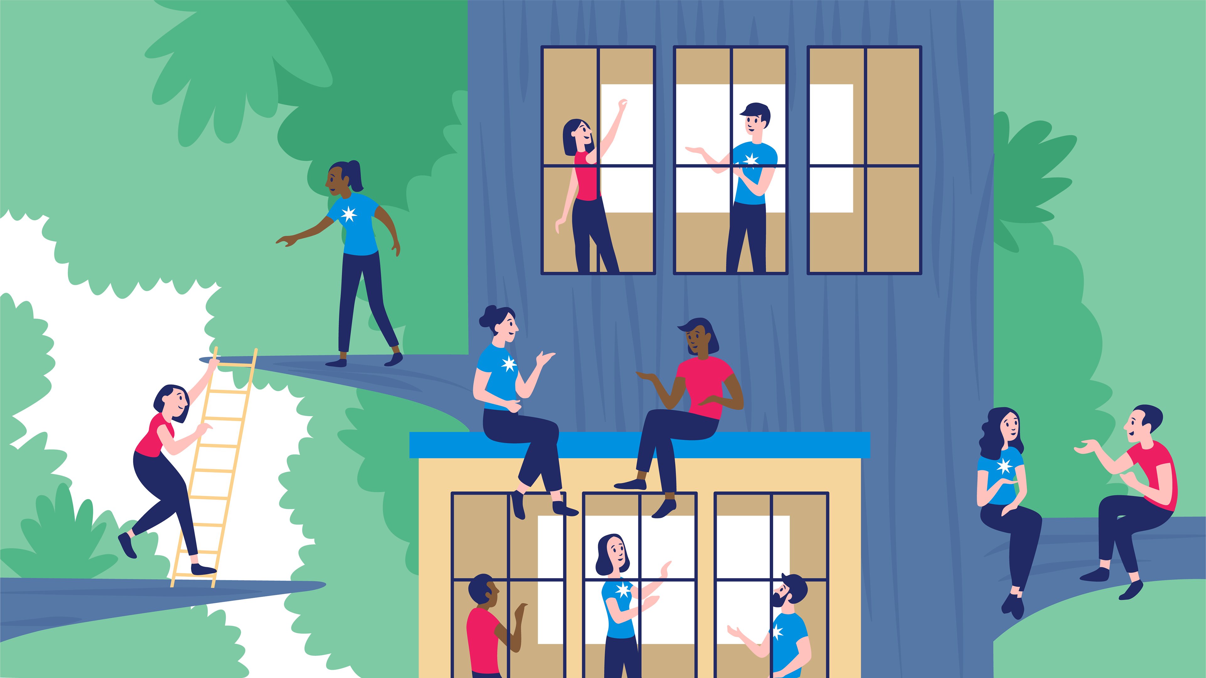 Corporate illustrations for Maersk conveying ideas of collaboration and communication between customer and employee relationships.